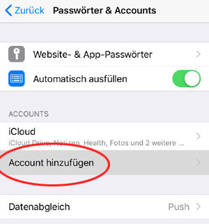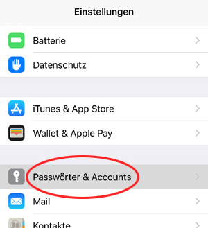 Tippen Sie auf Einstellungen Passwörter & Accounts bluetronix Mail Account (...Ihre Email-Adresse...) Erweitert.
